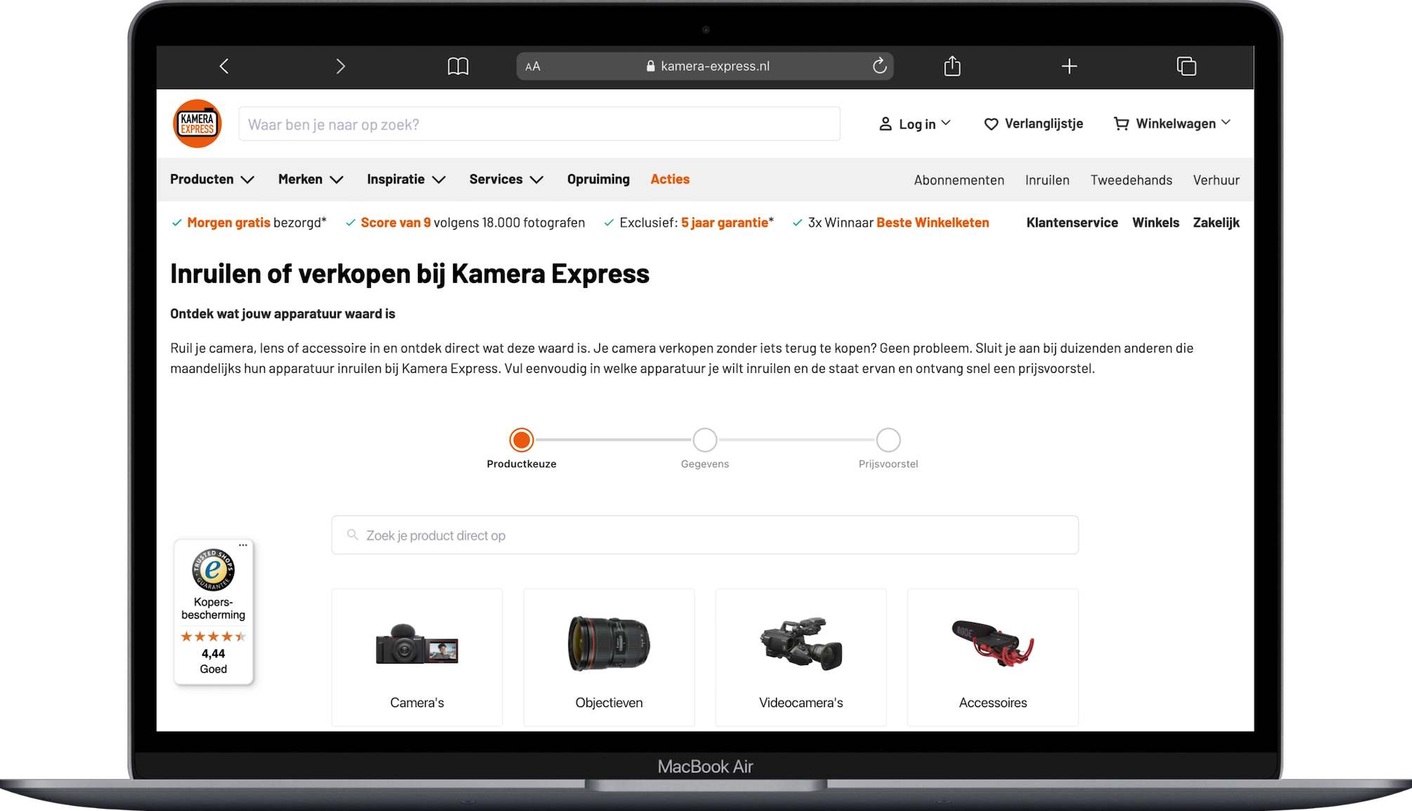Heb je een goed werkende camera die je niet meer gebruikt en wil je weten wat hij nog waard is? Natuurlijk kun je altijd op Marktplaats kijken om een inschatting te maken, maar dan blijft het de vraag of je er echt dat bedrag voor krijgt en wie er aan je deur komt. Gelukkig is er nu een simpelere én veiligere manier. Kamera-Express heeft een tool waarmee je direct een inruilvoorstel krijgt voor je camera of lens. Tevreden met het voorstel? Breng de camera dan langs de winkel of stuur hem eenvoudig op. Uiteraard zal Kamera-Express bij ontvangst van de camera/lens nog even een check doen waarna je een definitieve prijs krijgt. Ontzettend handig en veilig! Benieuwd naar de waarde van jouw camera? Probeer de tool zelf!